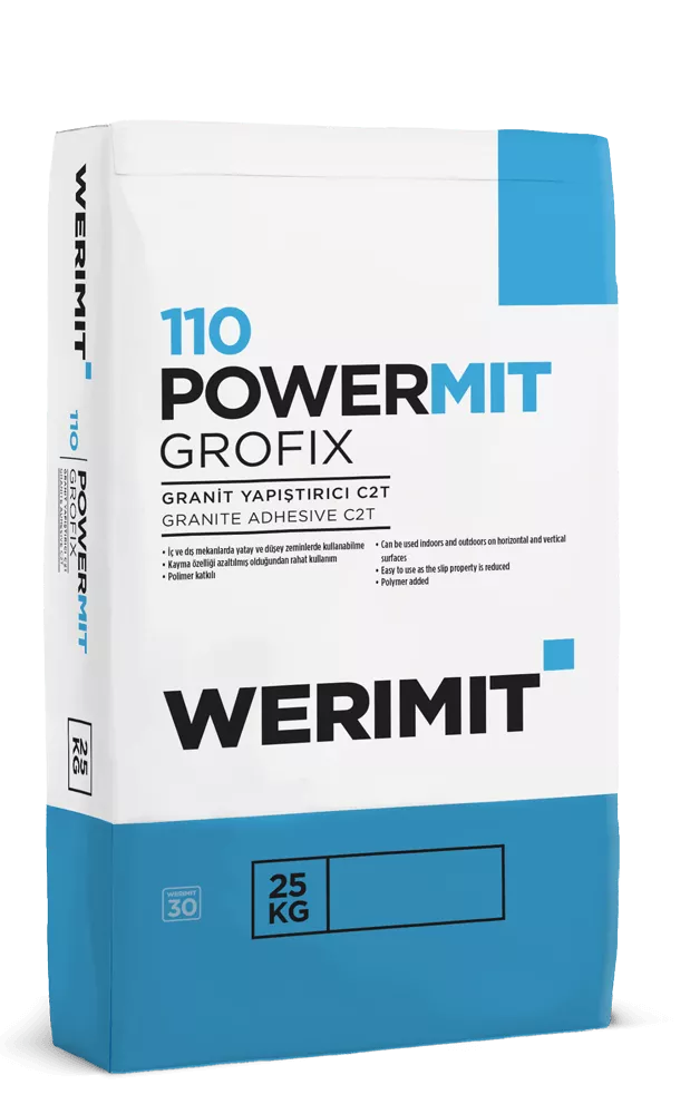 •Cement-based Tile Adhesive Mortar with reduced slip and extended open time.
