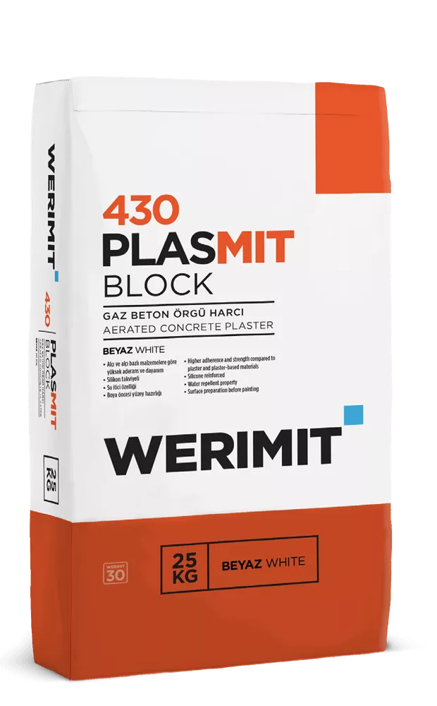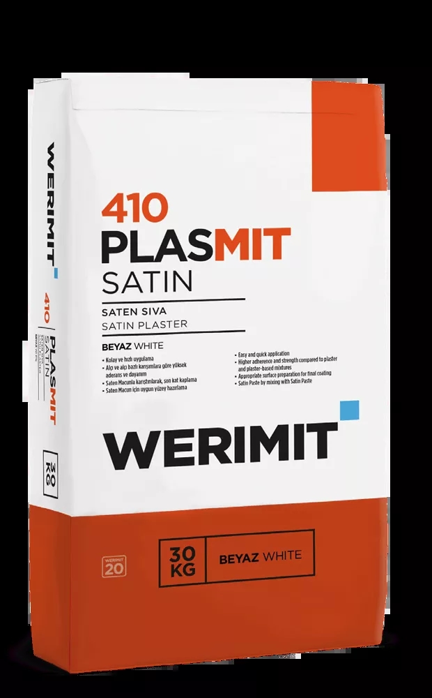 • 30 kg WERIMIT PLASMIT-SATIN (Satin Plaster) is poured into approximately 8.5-9.5 liters