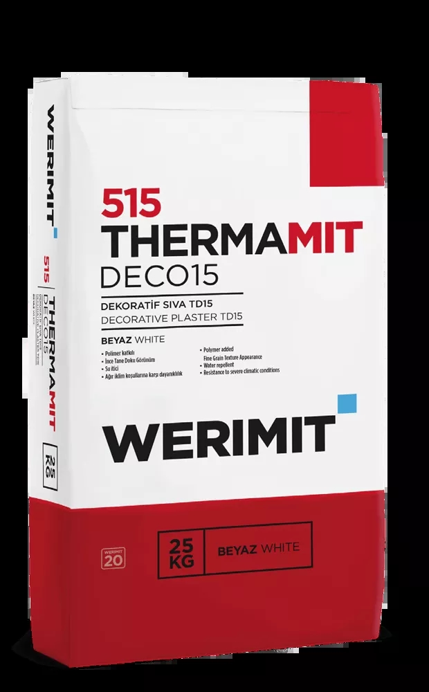 • 25 kg WERIMIT THERMAMIT-DECO15 (Decorative Plaster TD15) is poured on 5.5-6 liters of