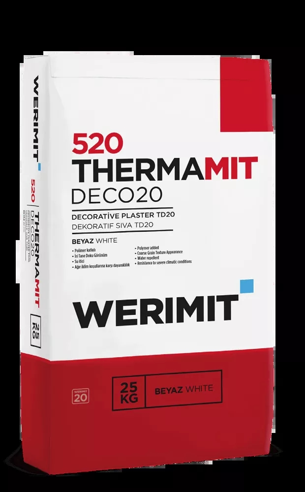• 25 kg WERIMIT THERMAMIT-DECO20 (Decorative Plaster TD20) is poured on 5.5-6 liters of