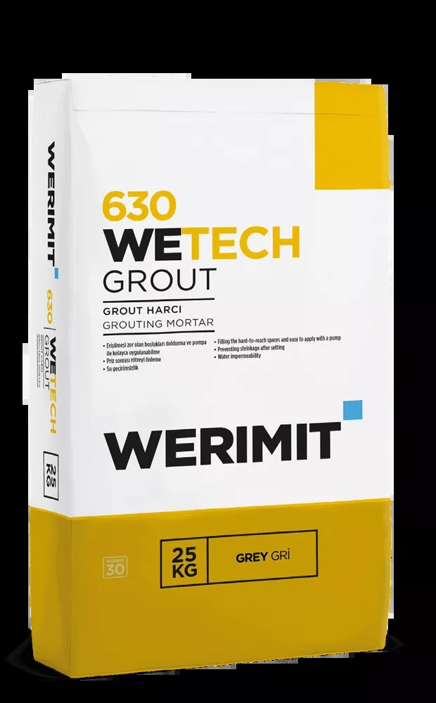 • Half of 25 kg WERIMIT WETECH-GROUT (Grouting Mortar) should be poured slowly onto